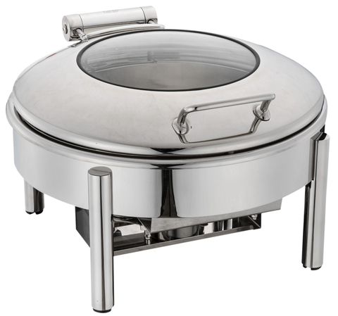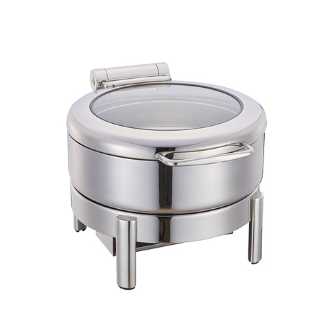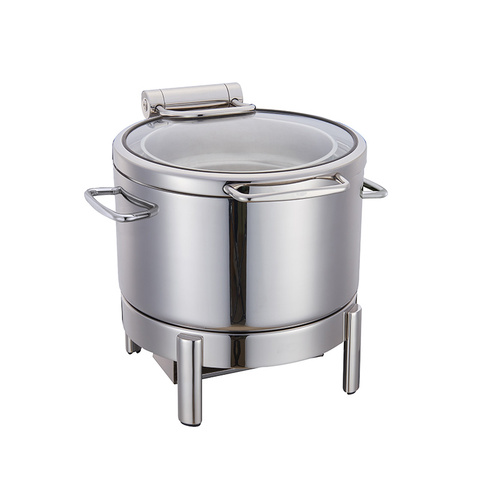 หม้อซุปบุฟเฟ่ต์ทรงกลมทำจากสแตนเลสพร้อมฝาปิดแก้วอุปกรณ์สำหรับห้องครัวร้านอาหาร6L