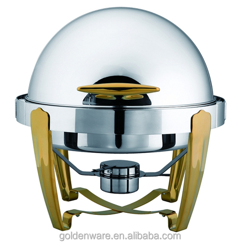 6L Yarım altın büfe ekipmanları yuvarlak üst indüksiyon reşo çanak catering için gıda ısıtıcısı hizmeti